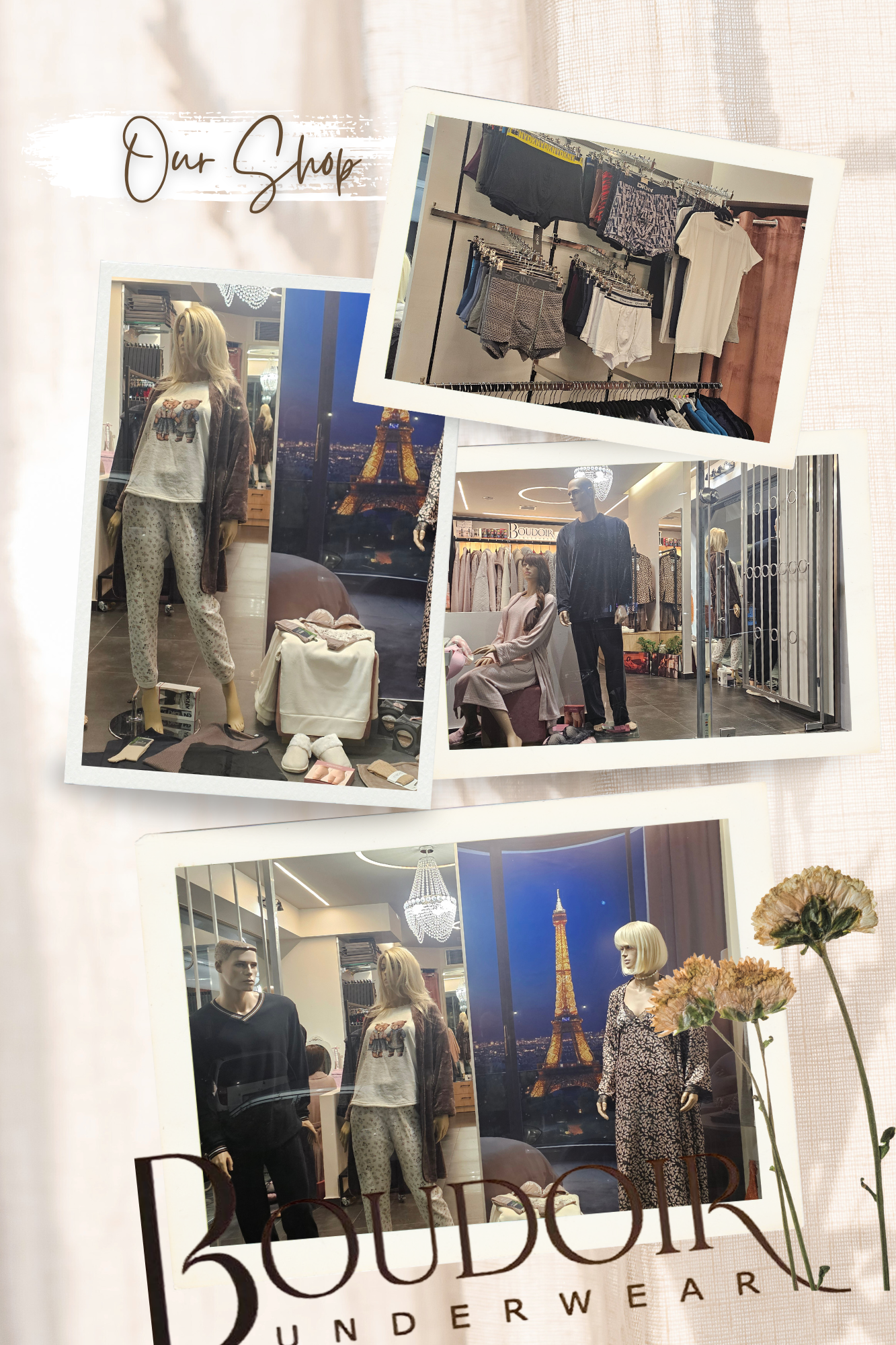 Μετά από τόσα χρόνια επιτυχίας, παραμένουμε αφοσιωμένοι στο να προσφέρουμε την καλύτερη εξυπηρέτηση, μέσα από τη συνεχώς ανανεωμένη συλλογή μας και τις συμβουλές της έμπειρης ομάδας μας. Κάθε επισκέπτης μας είναι για εμάς κάτι παραπάνω από πελάτης — είναι μέρος της οικογένειας του Boudoir και της ιστορίας μας.